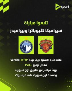 أعلنت شبكة أون سبورت عن إمكانية متابعة مباراة بيراميدز وسيراميكا كليوباترا عبر: